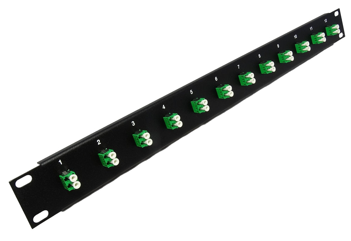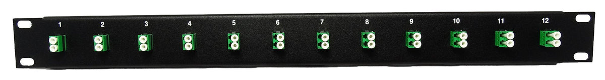 12 Port LC Fiber Patch Panel APC Singlemode (Green Couplers) (Loaded 1u) 19"