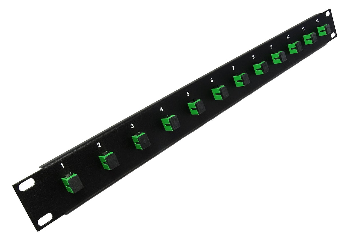 12 Port SC Fiber Patch Panel APC Singlemode (Green Couplers) (Loaded 1u) 19"