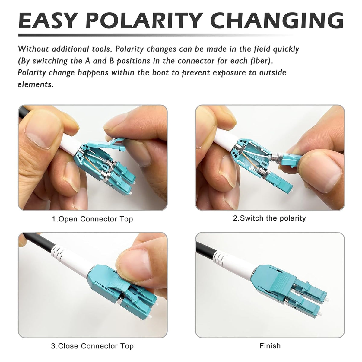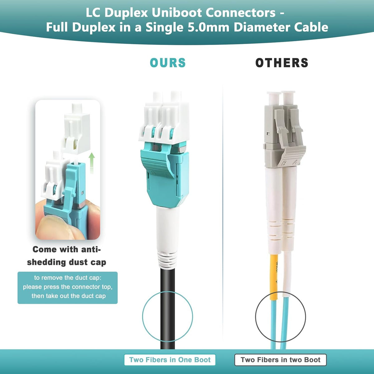TPU OM3 Fiber LC to LC Outdoor Armored Fiber Patch Cable, Duplex Multimode Fiber Optic Cable, 40Gb 10Gb, 50/125, Uniboot LC-LC with Pulling Eye Kit Installed on one end