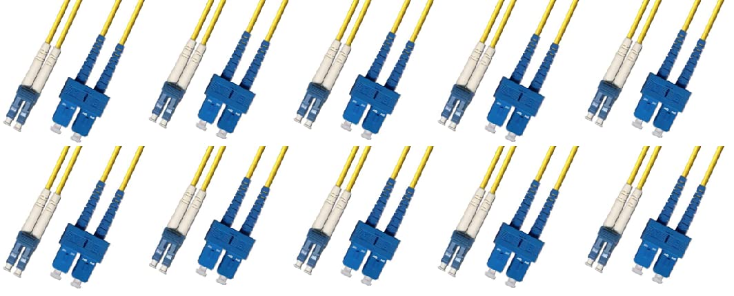 5 Meter Singlemode Duplex Fiber Optic Cable (9/125) - LC to SC - Yellow (10 Pack)