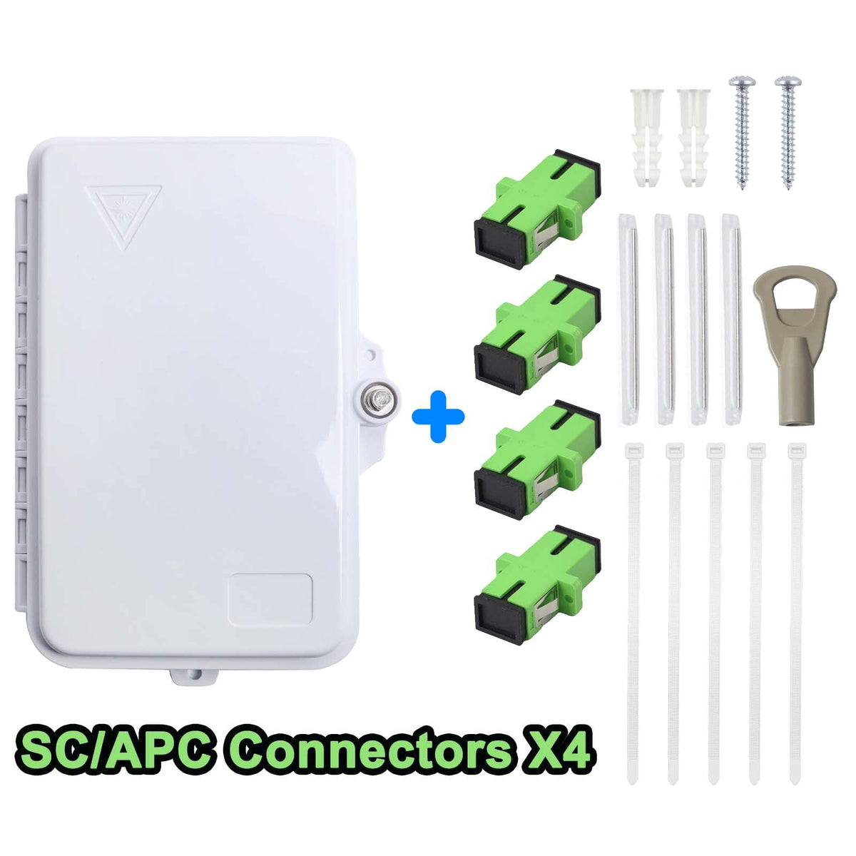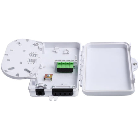4-Port Fiber Optic Distribution Box - Waterproof ABS Plastic, SC/APC Fiber Coupler, White