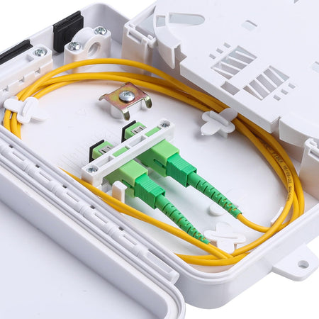 - FEATURES: For protective connection of fiber optic cables and wiring pigtails. Applicable to the distribution frame of optical cable and optical communication equipment. Through the adapter in the distribution box, optical signals are led out by optical patch cords to realize the optical wiring function.