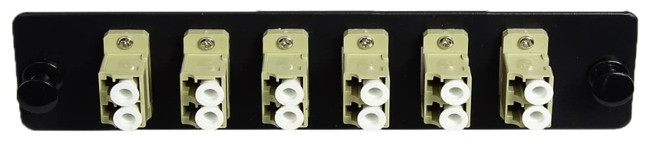 Our LGX Compatible LC Adapter Panel, 6 Ports, Loaded w/6 LC Duplex Multimode Adapters, providing connections for 6 LC jumpers. The panel can be used as a pass through or to connect LC assemblies together. Provides a simplified method of routing circuits with an orderly appearance. Designed for Quick Field Termination, which saves time and money. Constructed to fit blank panels and rack mount enclosures. Black powder coated steel construction. Lifetime Warranty. Also available in SC, ST, FC and MPO configurations. 100% Tested and Approved.
