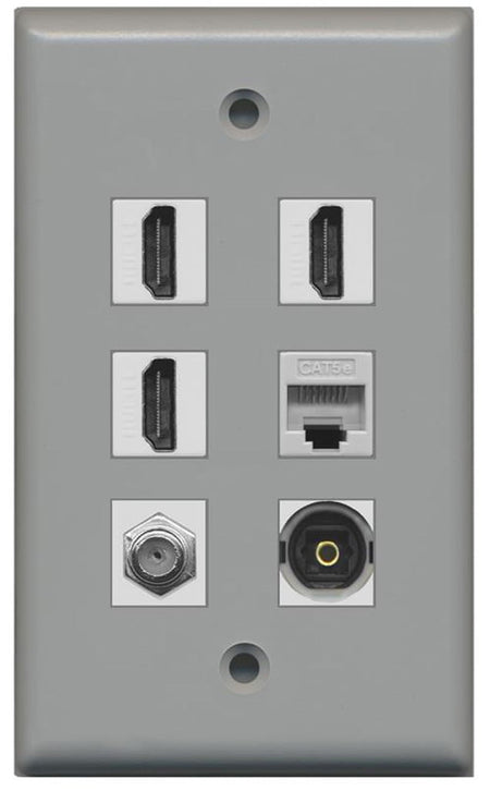 RiteAV - 3 HDMI 1 Port Coax Cable TV- F-Type 1 Port Toslink 1 Port Cat5e Ethernet Wall Plate - Gray