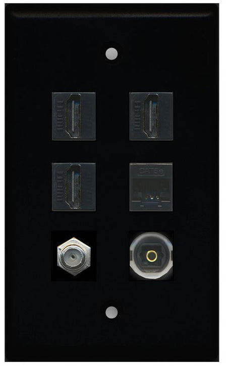 RiteAV - 3 HDMI 1 Port Coax Cable TV- F-Type 1 Port Toslink 1 Port Cat5e Ethernet Wall Plate - Black
