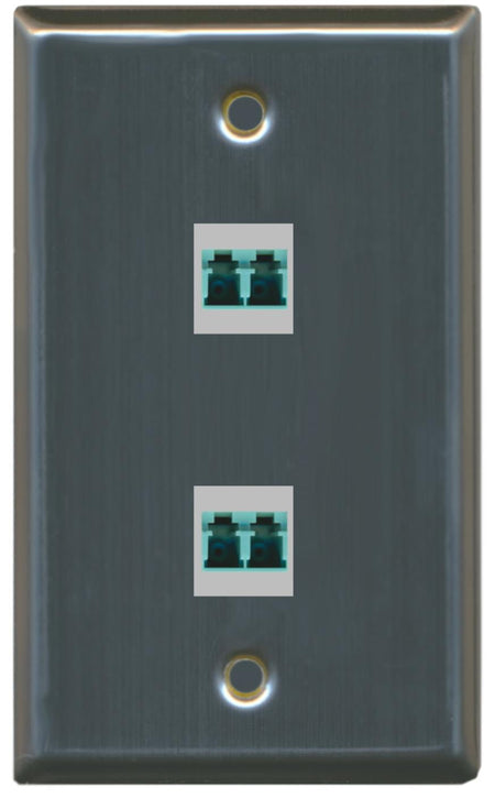RiteAV - 2 Port LC Fiber 10GB Duplex Wall Plate - Stainless Steel/Gray - Bracket Included