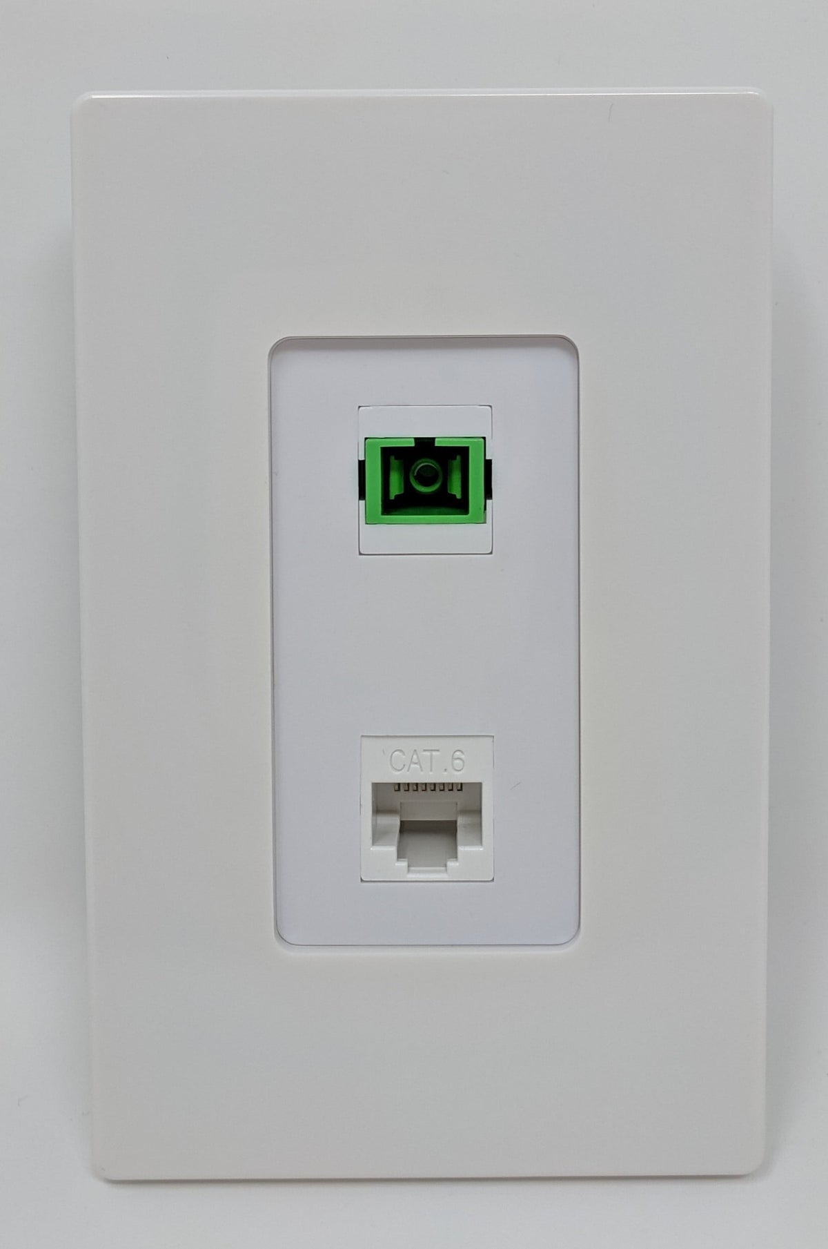 RiteAV - 1 Port SC/APC Simplex Fiber 1 Port Cat6 Ethernet Screwless Decorative Wall Plate