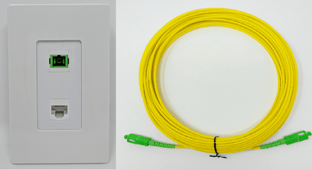 RiteAV - 1 Port SC/APC Simplex Fiber 1 Port Cat6 Ethernet Screwless Decorative Wall Plate includes a 50 Meter SC/APC Singlemode Simplex Cable