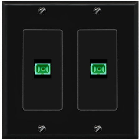 RiteAV 2 Port Fiber Optic Coupler Jack SC Simplex Singlemode APC Wall Plate-2 Gang Black/Black