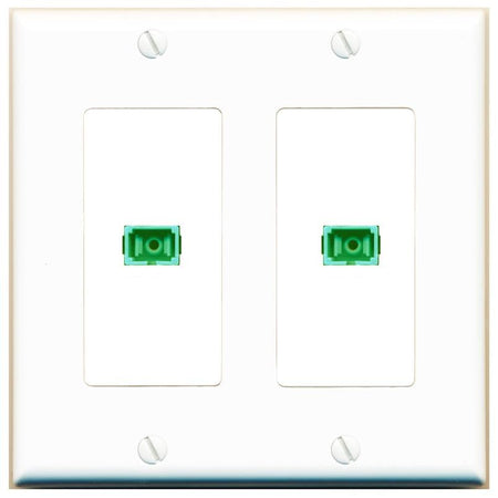RiteAV 2 Port Fiber Optic Coupler Jack SC Simplex Singlemode APC Wall Plate-2 Gang White