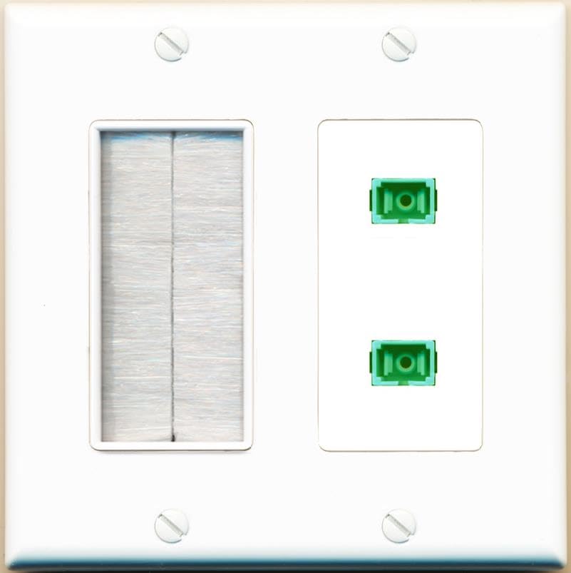 RiteAV 2 Port Fiber Optic Coupler Jack SC Simplex Singlemode APC Wall Plate-Brush White
