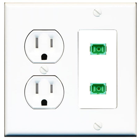 RiteAV 2 Port Fiber Optic Coupler Jack SC Simplex Singlemode APC Wall Plate-Tamper Proof White