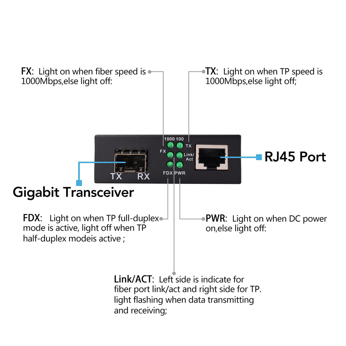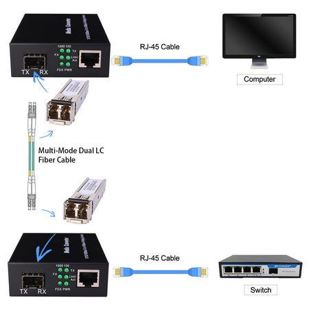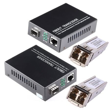 RiteAV - 1.25G/s Gigabit Multi-Mode Fiber Ethernet Media Converter with 2PCS Bidi SFP LC Dual Transceiver Module Included