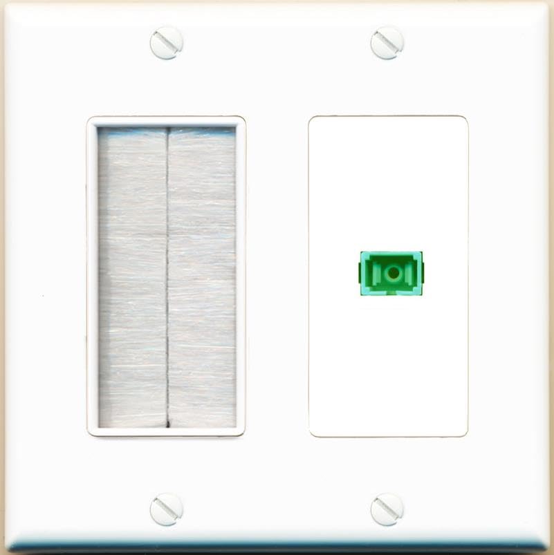 RiteAV 1 Port Fiber Optic Coupler Jack SC Simplex Singlemode APC Wall Plate-Brush White