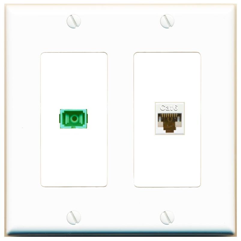 RiteAV 1 Port Fiber Optic Jack SC Simplex APC + Cat6 Wall Plate-2 Gang White