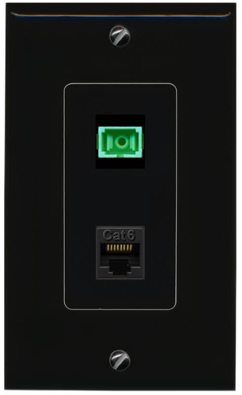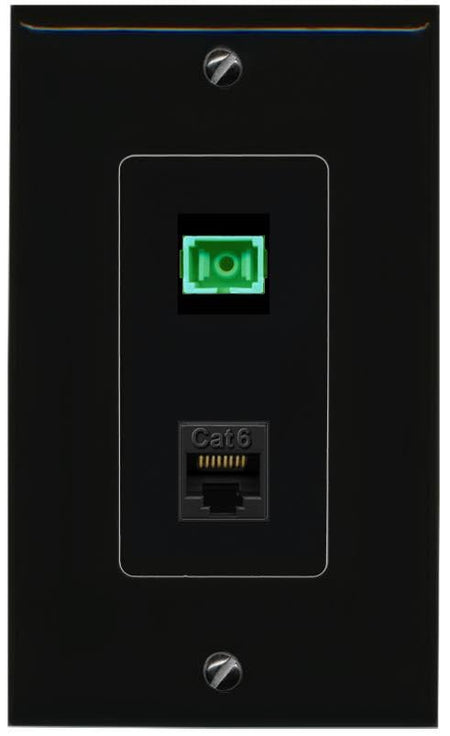 RiteAV 1 Port Fiber Optic Jack SC Simplex APC + Cat6 Wall Plate-1 Gang Black/Black