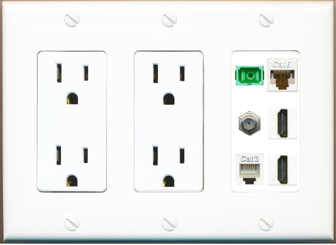 RiteAV 1 Port Fiber Optic Jack SC Simplex APC + Cat6 + Coax + 2 x HDMI + Phone Wall Plate-2 Outlet White