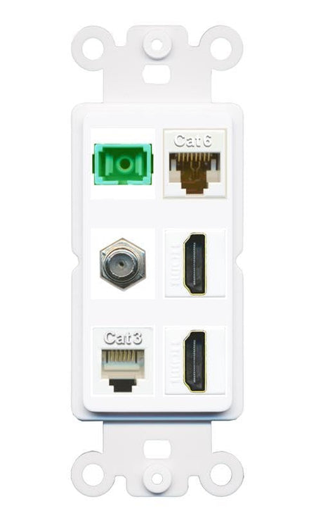RiteAV 1 Port Fiber Optic Jack SC Simplex APC + Cat6 + Coax + 2 x HDMI + Phone Wall Plate-Rocker White