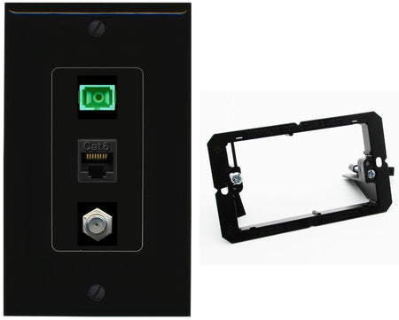 RiteAV 1 Port Fiber Optic Jack SC Simplex APC + Cat6 + Coax Wall Plate-Bracket Black/Black