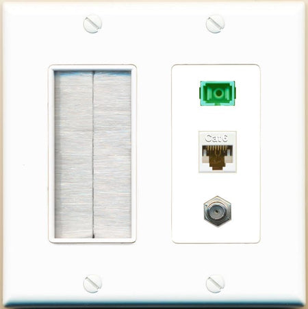 RiteAV 1 Port Fiber Optic Jack SC Simplex APC + Cat6 + Coax Wall Plate-Brush White