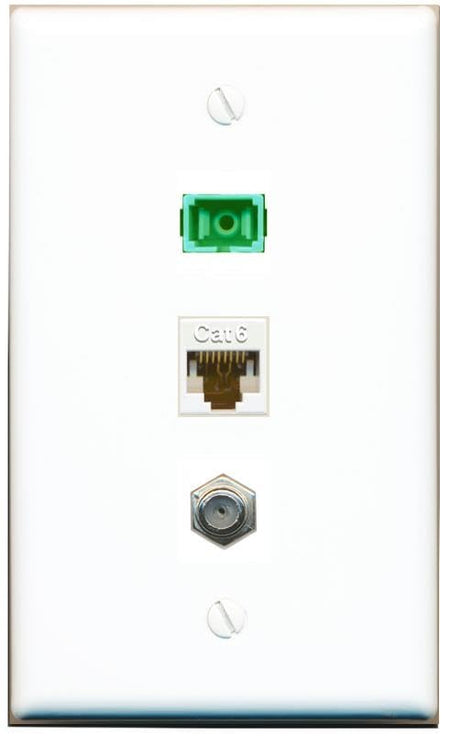 RiteAV 1 Port Fiber Optic Jack SC Simplex APC + Cat6 + Coax Wall Plate-Flat White