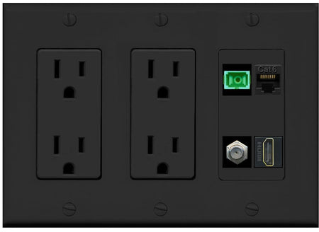 RiteAV 1 Port Fiber Optic Jack SC Simplex APC + Cat6 + Coax + HDMI Wall Plate-2 Outlet Black/Black