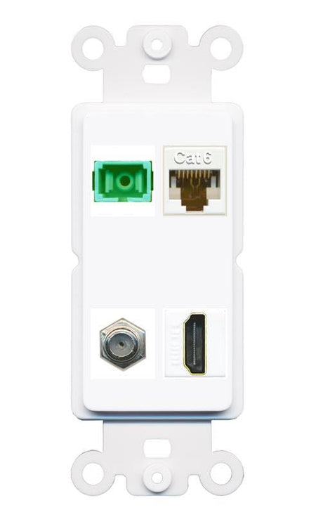 RiteAV 1 Port Fiber Optic Jack SC Simplex APC + Cat6 + Coax + HDMI Wall Plate-Rocker White