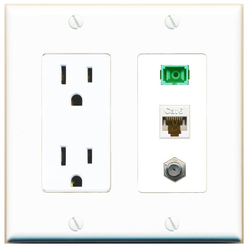 RiteAV 1 Port Fiber Optic Jack SC Simplex APC + Cat6 + Coax Wall Plate-Outlet White