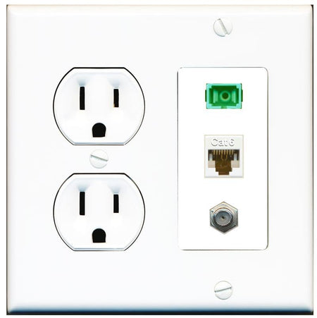 RiteAV 1 Port Fiber Optic Jack SC Simplex APC + Cat6 + Coax Wall Plate-Round Outlet White