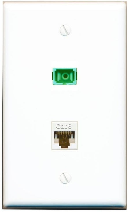 RiteAV 1 Port Fiber Optic Jack SC Simplex APC + Cat6 Wall Plate-Flat White