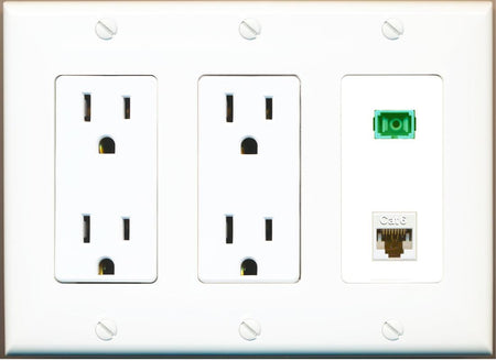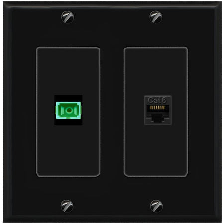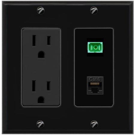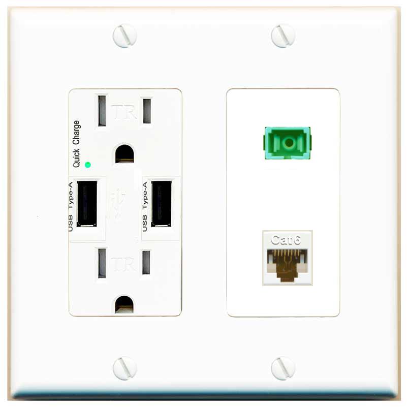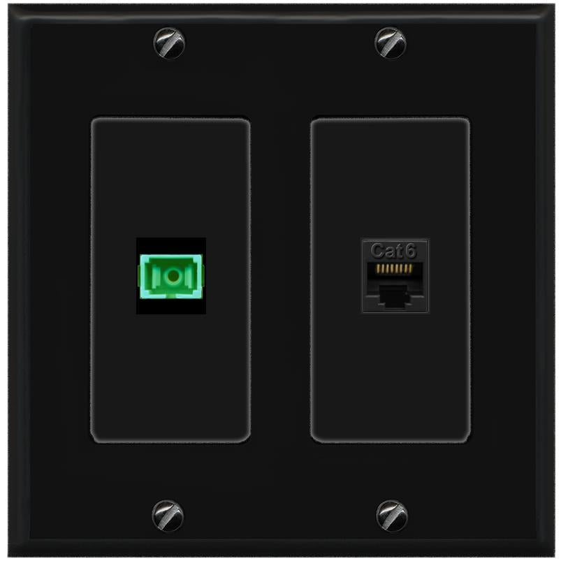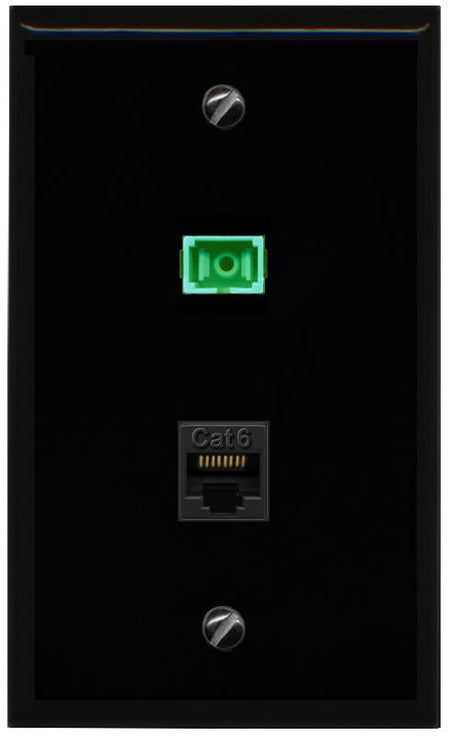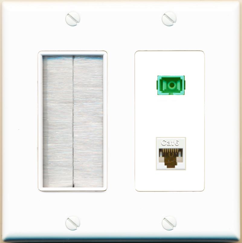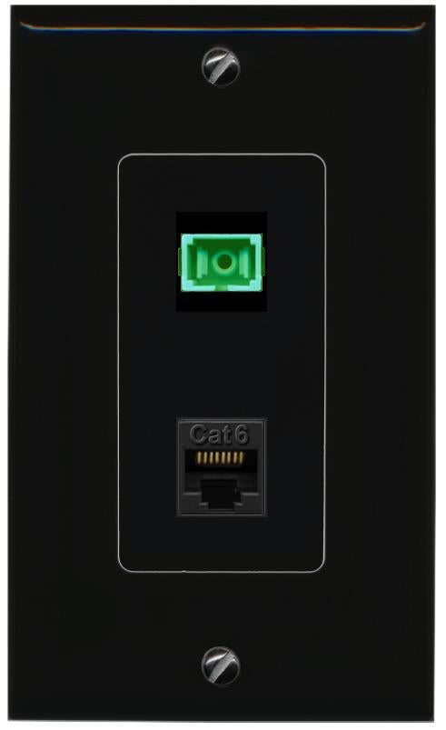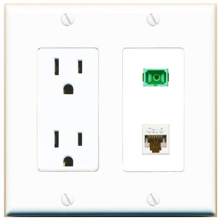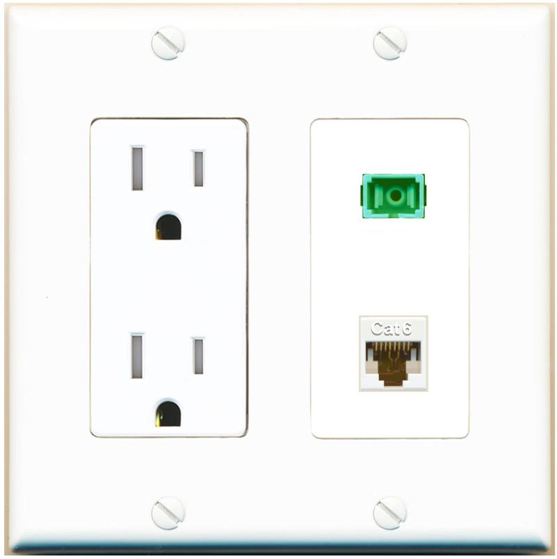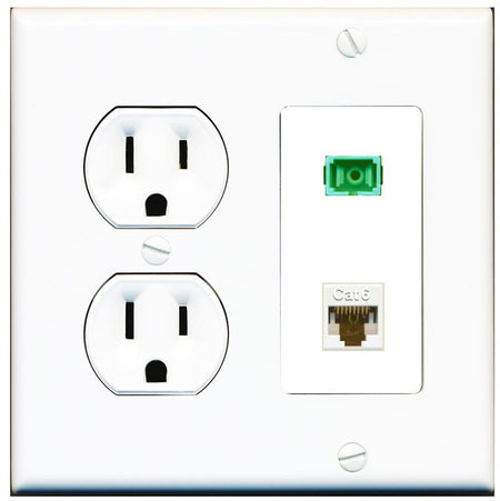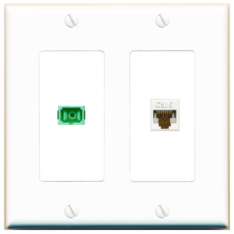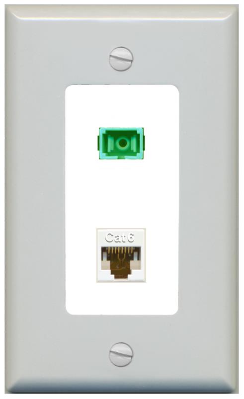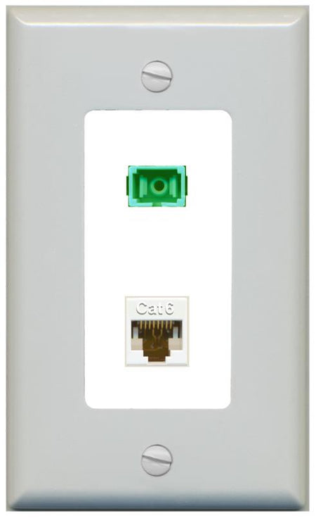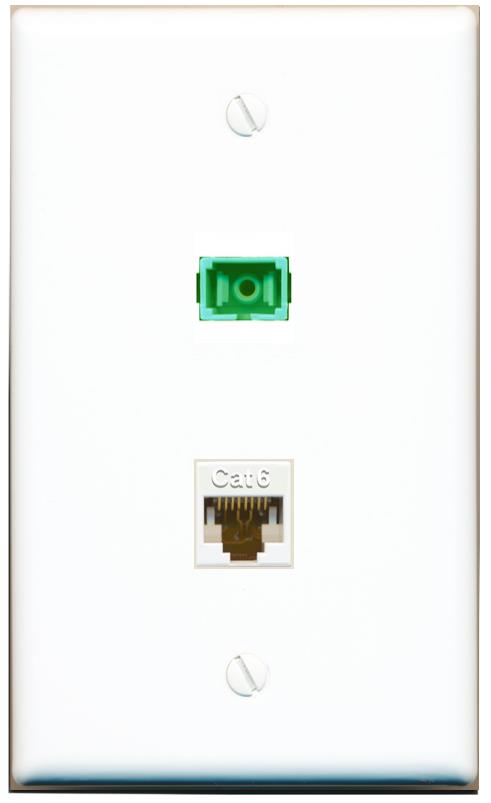 RiteAV 1 Port Fiber Optic Jack SC Simplex APC + Cat6 Wall Plate-1 Gang White