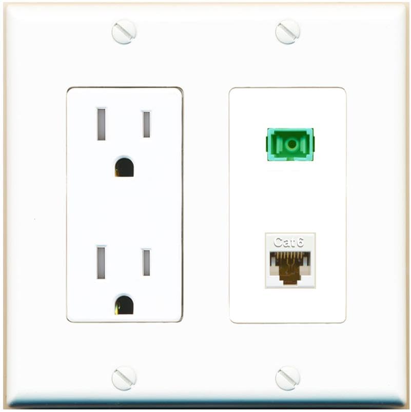 RiteAV 1 Port Fiber Optic Jack SC Simplex APC + Cat6 Wall Plate-Tamper-Res White
