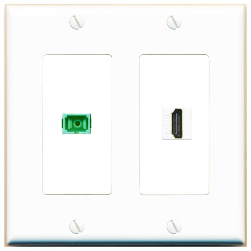 RiteAV 1 Port Fiber Optic Jack SC Simplex APC + HDMI Wall Plate-2 Gang White