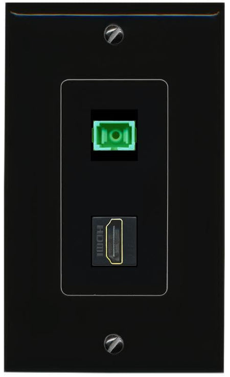 RiteAV 1 Port Fiber Optic Jack SC Simplex APC + HDMI Wall Plate-1 Gang Black/Black