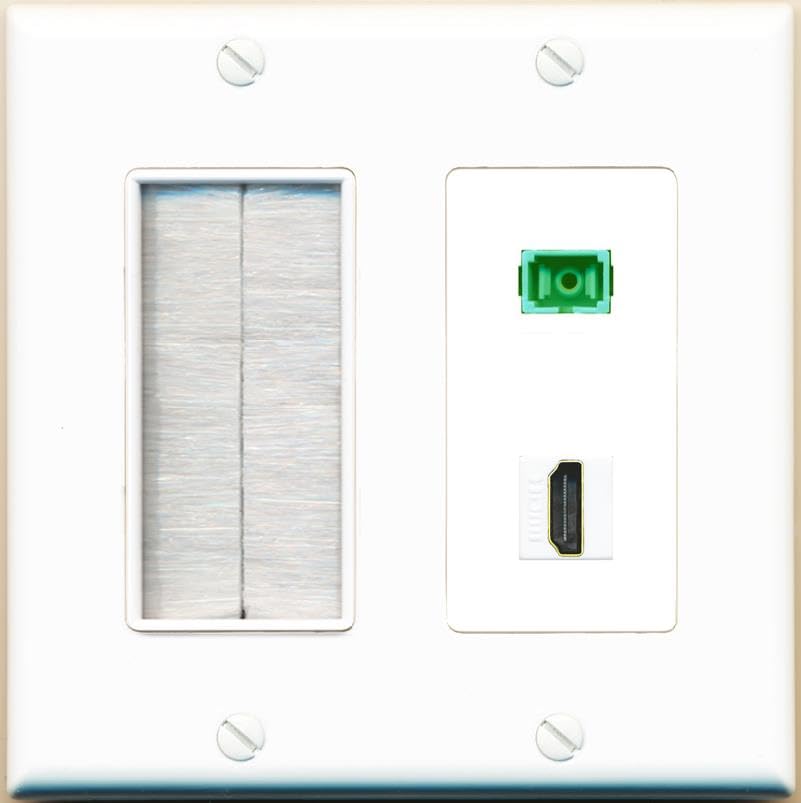 RiteAV 1 Port Fiber Optic Jack SC Simplex APC + HDMI Wall Plate-Brush White
