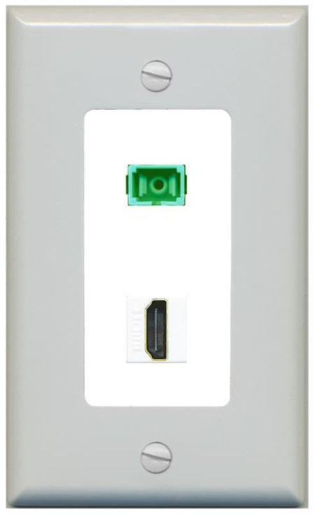 RiteAV 1 Port Fiber Optic Jack SC Simplex APC + HDMI Wall Plate-1 Gang Gray/White