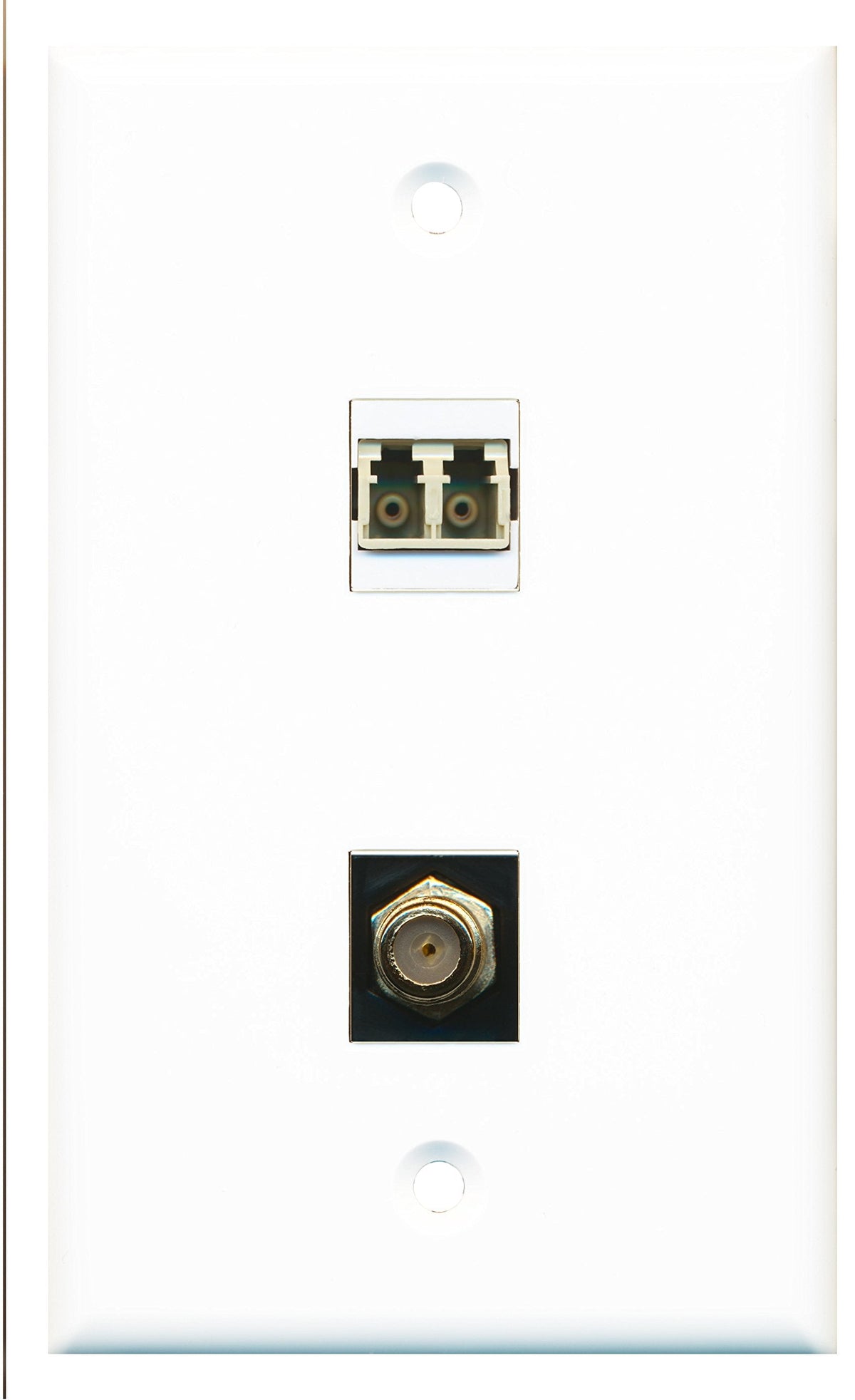RiteAV - 1 Port LC Fiber Multimode Duplex 1 Port Coax Cable TV- F-Type Black Wall Plate - Bracket Included
