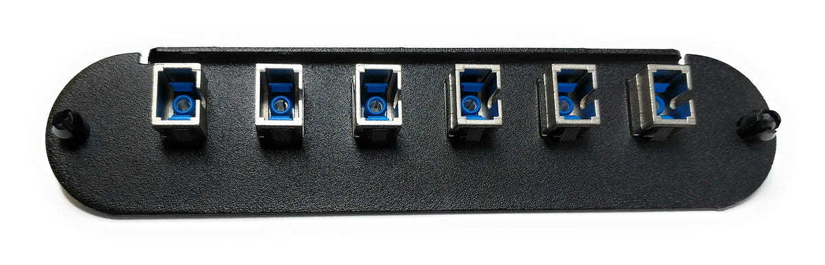 RiteAV - CCH FC/SC (6 Port Simplex w/6 Fiber Connectors) Adapter Panel (Non-LGX) Silver/Black (50/125) for Magenta OM4 Multimode 40Gb