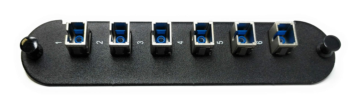 RiteAV - CCH SC/FC (6 Port Simplex w/6 Fiber Connectors) Adapter Panel (Non-LGX) Silver/Black (9/125) for Yellow OS2 Singlemode APC
