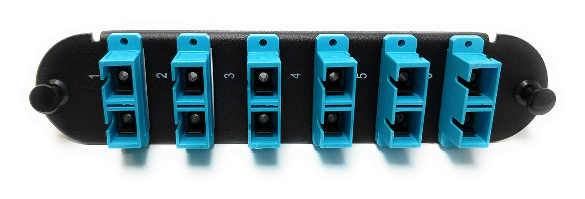 RiteAV - CCH SC/SC (6 Port Duplex w/12 Fiber Connectors) Adapter Panel (Non-LGX) Aqua/Black (50/125) for Aqua OM4 Multimode 40Gb