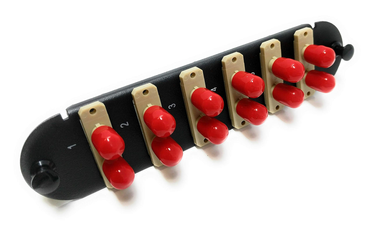 RiteAV - CCH ST/SC (6 Port Duplex w/12 Fiber Connectors) Adapter Panel (Non-LGX) Beige/Black (50/125) for Aqua OM3 Multimode 10Gb