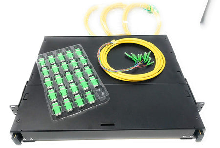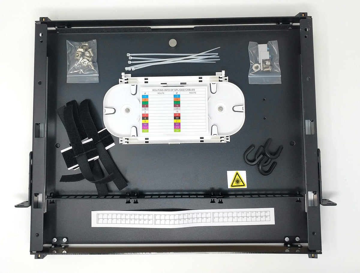 Ultra Spec Cable 1U 24 Port 19" Rack Mount Fiber Enclosure Singlemode LC-APC Kit (Includes 4 x 3 Meter 12 Strand LC-APC Pigtails and 24 x LC-APC Adapters) for Splice