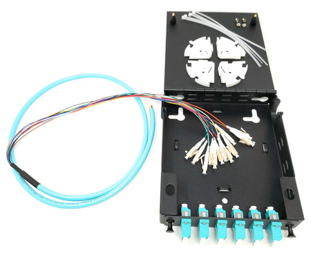 Ultra Spec Cables 12 Port Wall Mount Fiber Enclosure with Spool OM3 Multimode LC-UPC Kit (Includes a 1 Meter 12 Strand LC-UPC OM3 Pigtail and 6 Port Duplex OM3 LGX Loaded Panel for Splice