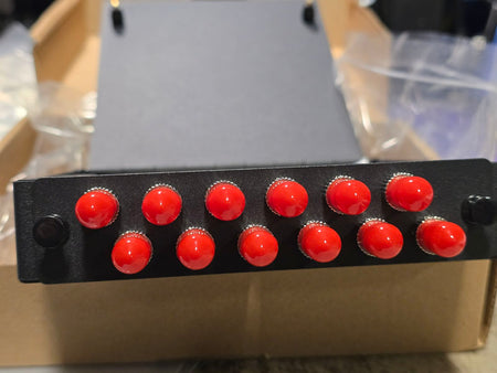 Ultra Spec Cable Wall Mount Fiber Enclosure with Spool and Loaded 12 Port ST-UPC OM1/OM2 Multimode LGX Panel is ideal for organizing and safeguarding your critical fiber optic backbone connections. The enclosure is manufactured from high-quality cold rolled steel and the powder coated finish provides an added level of durability while protecting the enclosure from corrosion. It weighs 26 ounces and measures 6.5" H x 5.5" W x 1.25" D. The Wall Mount Box includes a loaded 12 Port OM1/OM2 Multimode Simplex ST-UPC LGX Panel. The adapters precisely align ST Connectors using Ultra Physical Contact which results in Low Insertion Loss and High Return Loss and are shipped with dust caps to prevent dust and debris from contaminating the adapter. The enclosure's top door provides quick access and the front panel is also removable if necessary which is paramount during the initial installation or routine maintenance. The spool helps to route the fiber and stores the spliced fiber efficiently. The accessory pack consists cable ties and a Port Identification Card to keep the cables you will connect to the backside of the adapters both tidy and cataloged. The Wall Mount Box provides optimum protection keeps your fiber distribution organized when space is limited and maintains the integrity of your connections. It's perfect for use multi-building campus networks like hospitals universities government facilities corporate complexes and sectors like transportation and industrial automation. We offer a Splice Option instead of the Spool as well as kits that include the 12 Strand Pigtails with different adapter types and polishes.
