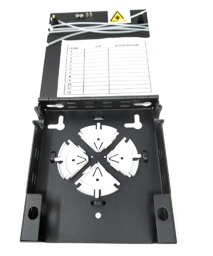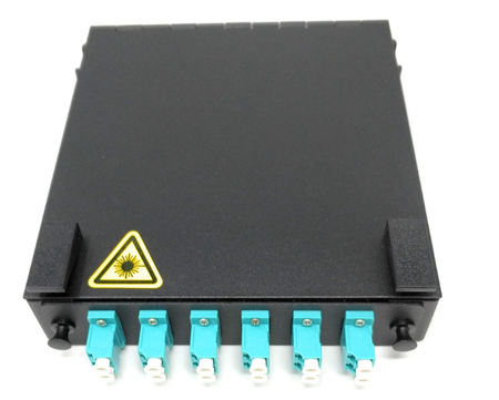 Our Wall Mount Fiber Enclosure with Spool and Loaded 6 Port LC-UPC OM3 Multimode Duplex LGX Panel is ideal for organizing and safeguarding your critical fiber optic backbone connections. The enclosure is manufactured from high-quality cold rolled steel and the powder coated finish provides an added level of durability, while protecting the enclosure from corrosion. It weighs 26 ounces and measures 6.5" H x 5.5" W x 1.25" D. The Wall Mount Box includes a loaded 6 Port OM3 Multimode Duplex LC-UPC LGX Panel. The adapters precisely align LC Connectors using Ultra Physical Contact which results in Low Insertion Loss and High Return Loss and are shipped with dust caps to prevent dust and debris from contaminating the adapter. The enclosure's top door provides quick access and the front panel is also removable if necessary, which is paramount during the initial installation or routine maintenance. The spool helps to route the fiber and stores the spliced fiber efficiently. The accessory pack consists cable ties and a Port Identification Card to keep the cables you will connect to the backside of the adapters, both tidy and cataloged. The Wall Mount Box provides optimum protection, keeps your fiber distribution organized when space is limited and maintains the integrity of your connections. It's perfect for use multi-building campus networks, like hospitals, universities, government facilities, corporate complexes and sectors like transportation and industrial automation. We offer a Splice Option instead of the Spool as well as kits that include the 12 Strand Pigtails with different adapter types and polishes.