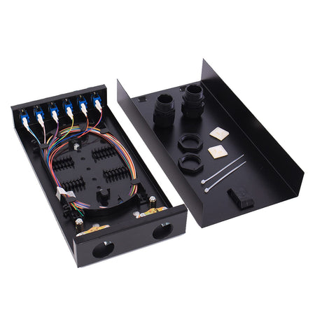 1.Fiber termination box features a completely secured fiber enclosure space. No other fiber optic box blends this well into a wiring closet and provides this level of security in a wall mount fiber enclosure. Fiber enclosure wall mount solutions need to be flexible and allow for all types of fiber termination.