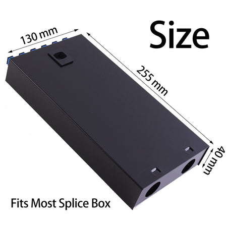 1.Dimension 255mm*130mm*40mm, Can be mounted vertically or horizontally;The kit provides optimum protection, keeps your fiber distribution organized when space is limited and maintains the integrity of your connections.